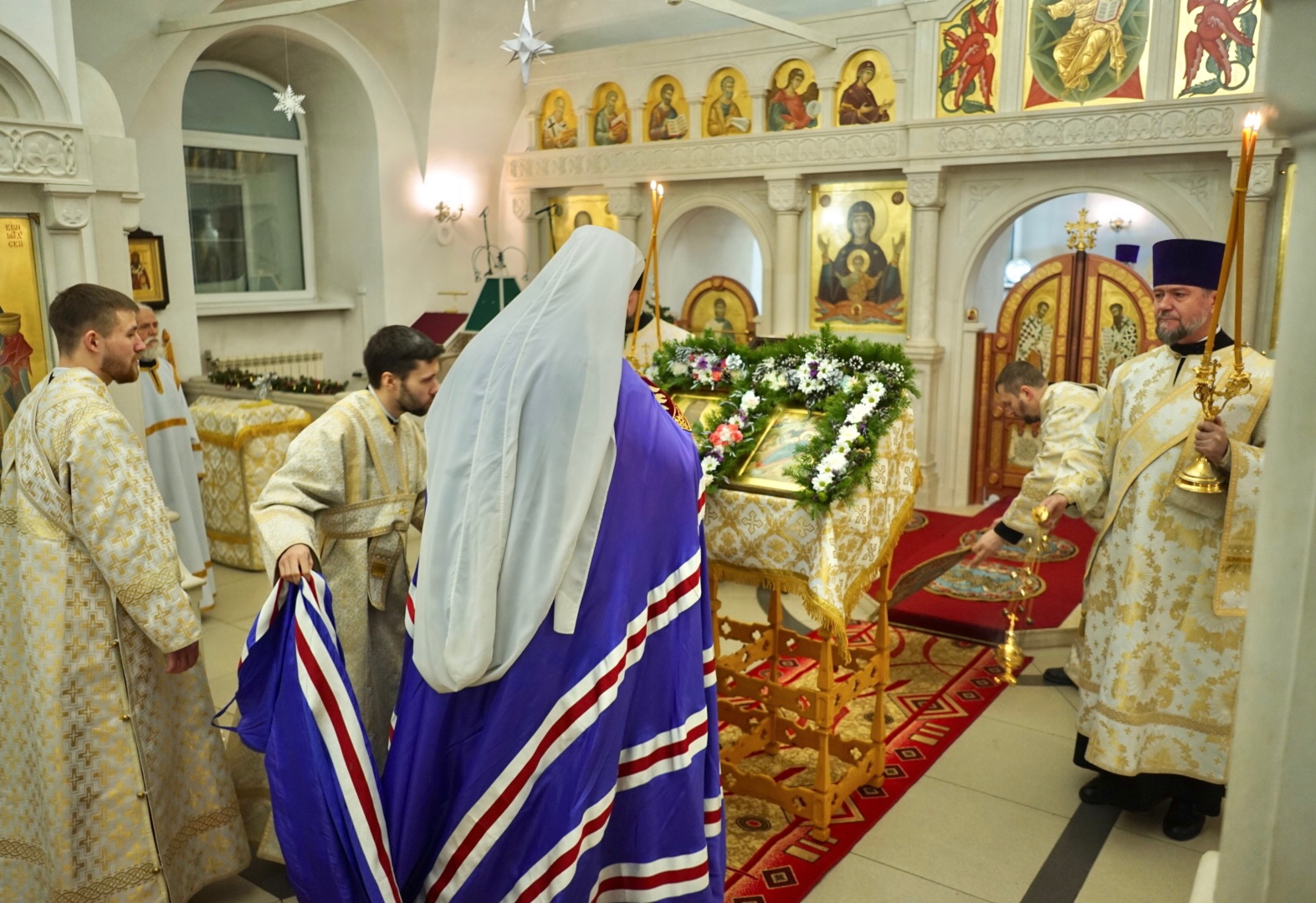 За Божественной литургией, которую мы совершили в сей святочный день, сослужили благочинные, настоятели и клирики храмов града Архангельска. Сердечно благодарю всех вас, дорогие отцы, братья и сестры, за нашу сегодняшнюю общую молитву. Благодарю наших пастырей за те труды, которые они несут во благовестии Христовом. Знаю, что каждый из вас несет свой пастырский крест с достоинством по Евангелию. Сердечно благодарю всех вас за участие в жизни нашей епархии, а наипаче за то, что каждый из вас в эти дни помогает новому нашему кафедральному соборному храму в честь Архистратига Божия Михаила. Кто-то несет там череду, совершает богослужения, иные дают лепту, другие присылают своих прихожан для того, чтобы там всегда горела неугасимая лампада нашей веры и любви ко Христу Спасителю.