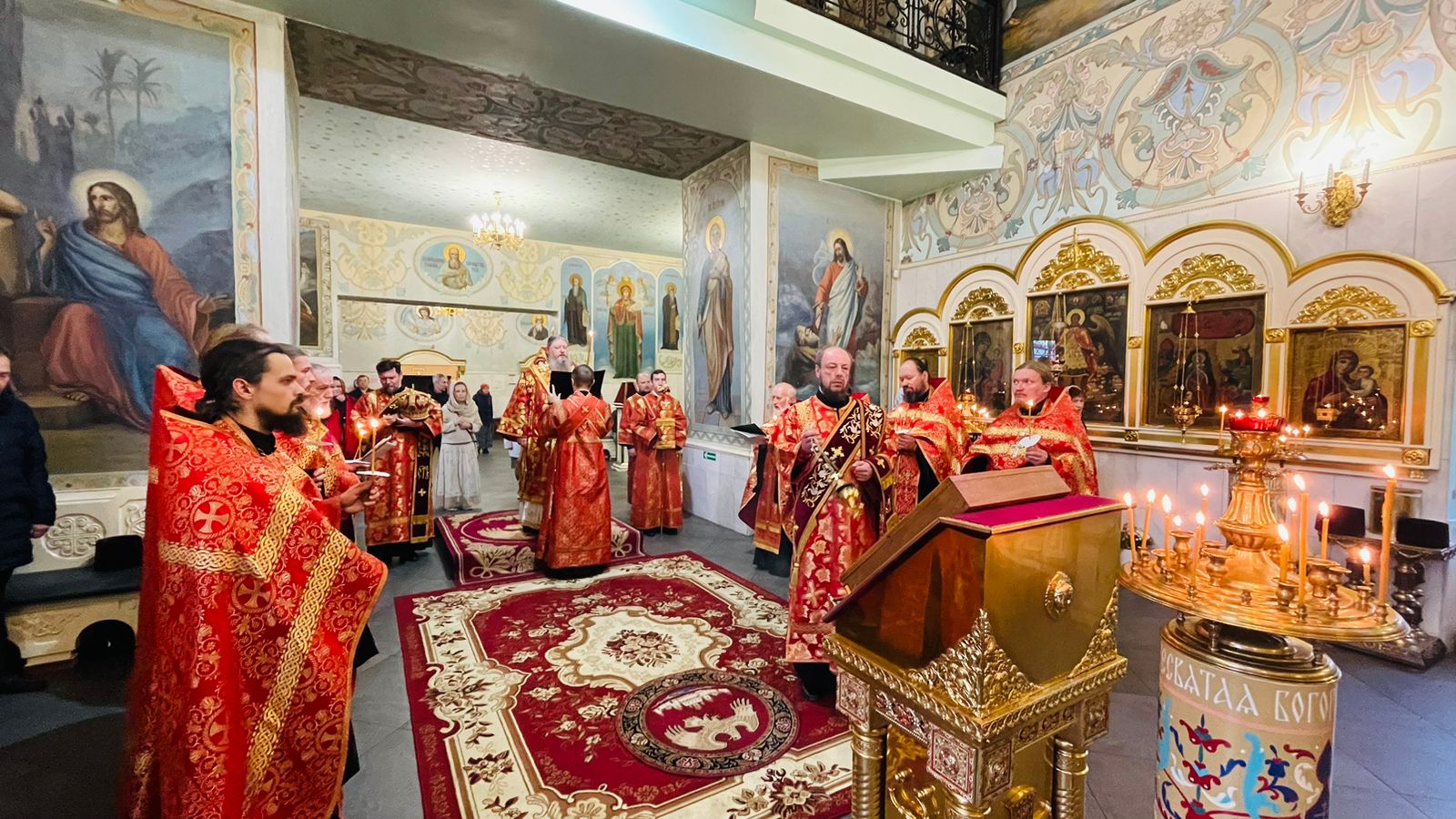 Архипастырю сослужили городские клирики, пел малый состав архиерейского хора.