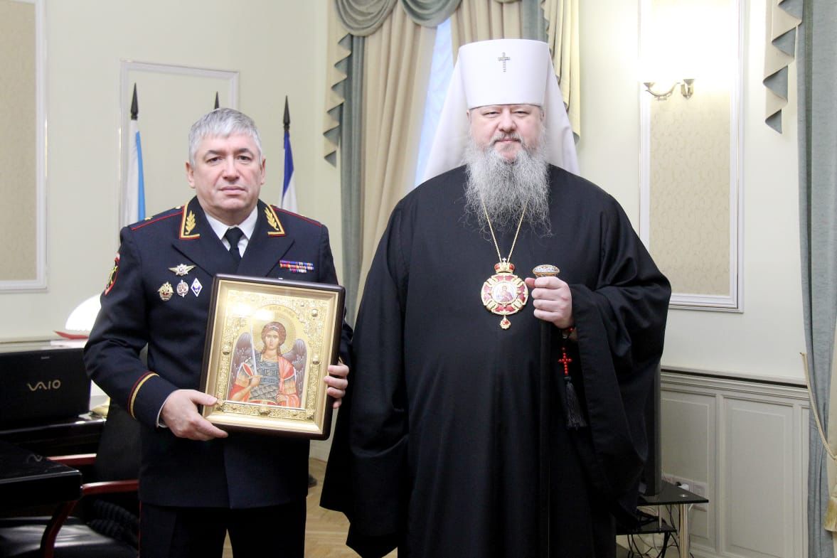 Митрополит Архангельский и Холмогорский Корнилий 10 ноября, в День сотрудника органов внутренних дел Российской Федерации, встретился с начальником УМВД России по Архангельской области генерал-майором полиции Александром Прядко.
