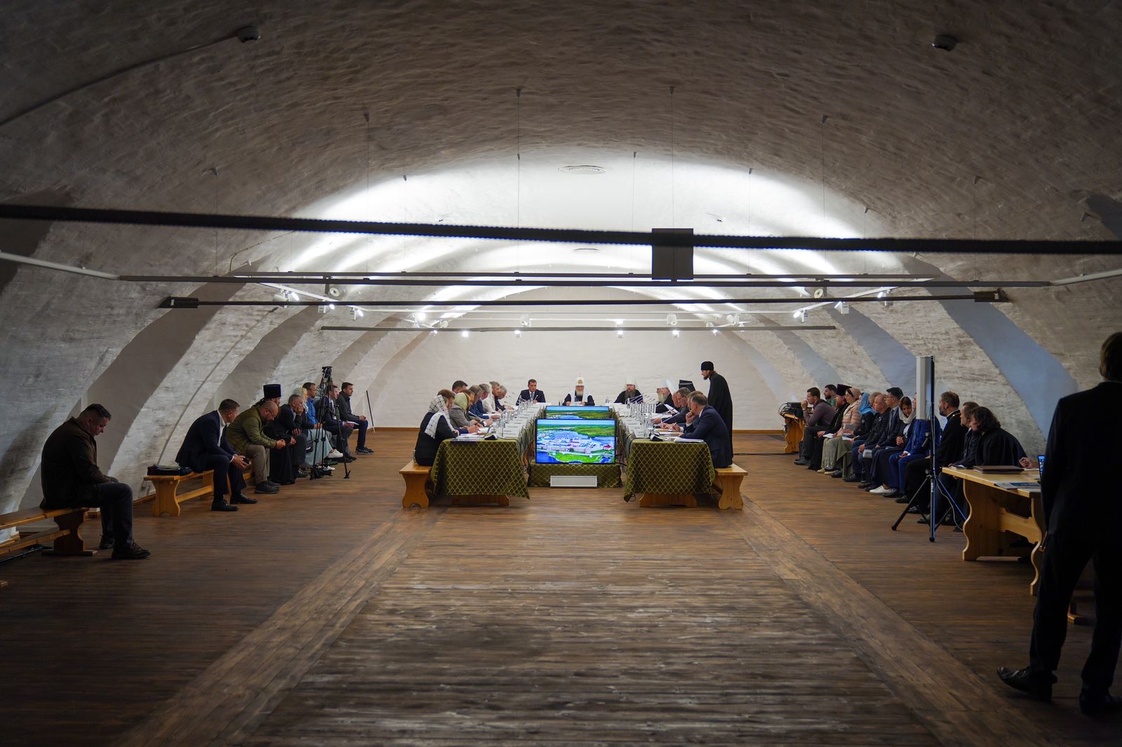 Совещание прошло в Больничном (Казначейском) корпусе Спасо-Преображенского Соловецкого ставропигиального монастыря в рамках визита Патриарха, приуроченного к торжествам по случаю дня памяти преподобных Зосимы, Савватия и Германа Соловецких.