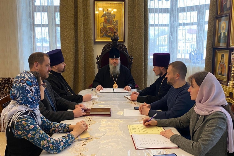 На совещании рассмотрели вопросы, связанные с организацией предстоящих архиерейских богослужений в храмах епархии, а также ряд важных моментов, касающихся работы епархиальных подразделений.