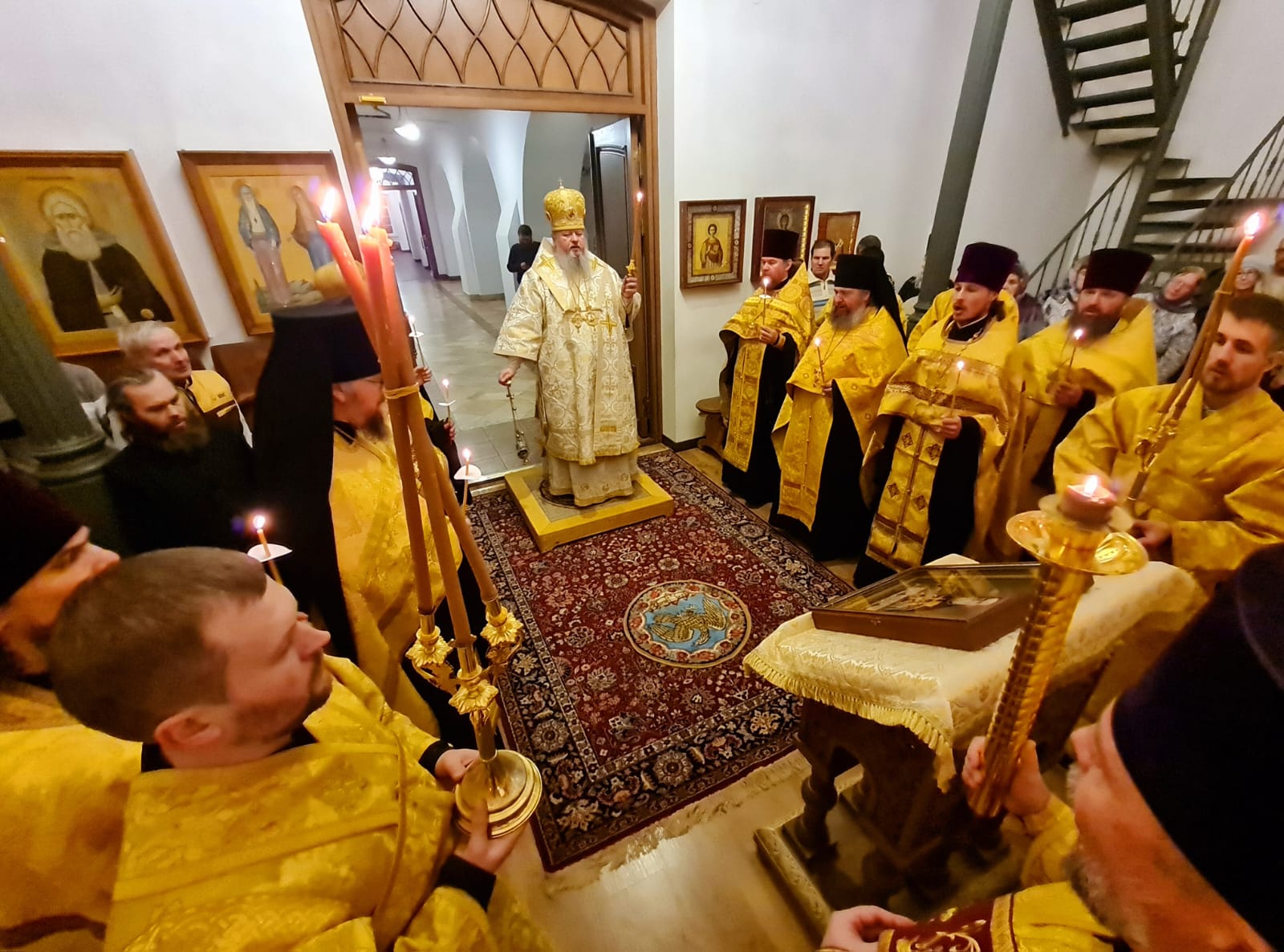 1 января, в канун праздника святого праведного Иоанна Кронштадтского, Его Высокопреосвященство совершил всенощное бдение в храме Казанской иконы Божией Матери в Артемиево-Веркольском монастыре. Архипастырю сослужили наместник обители архимандрит Иосиф (Волков), сопровождавшие владыку клирики епархии, насельники монастыря в священном сане и клирики Пинежского благочиния. Богослужебные песнопения исполнило трио певчих архиерейского хора под управлением Татьяны Горшковой.