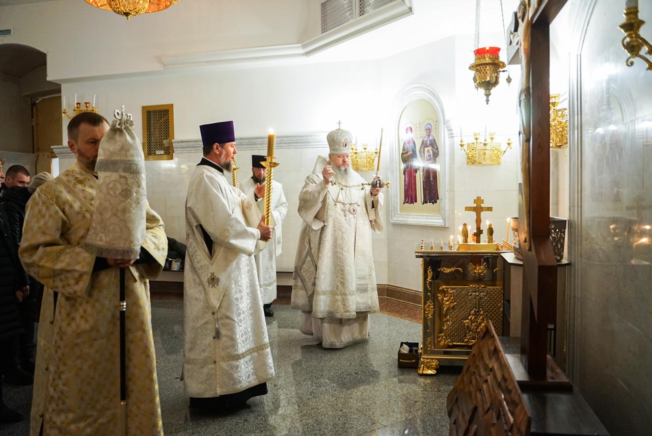 Архипастырю сослужило духовенство храма, пел квартет архиерейского хора.