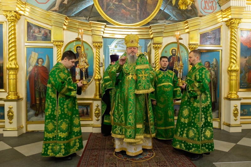 Архипастырю сослужили городские клирики, пел квартет архиерейского хора под управлением Татьяны Горшковой.