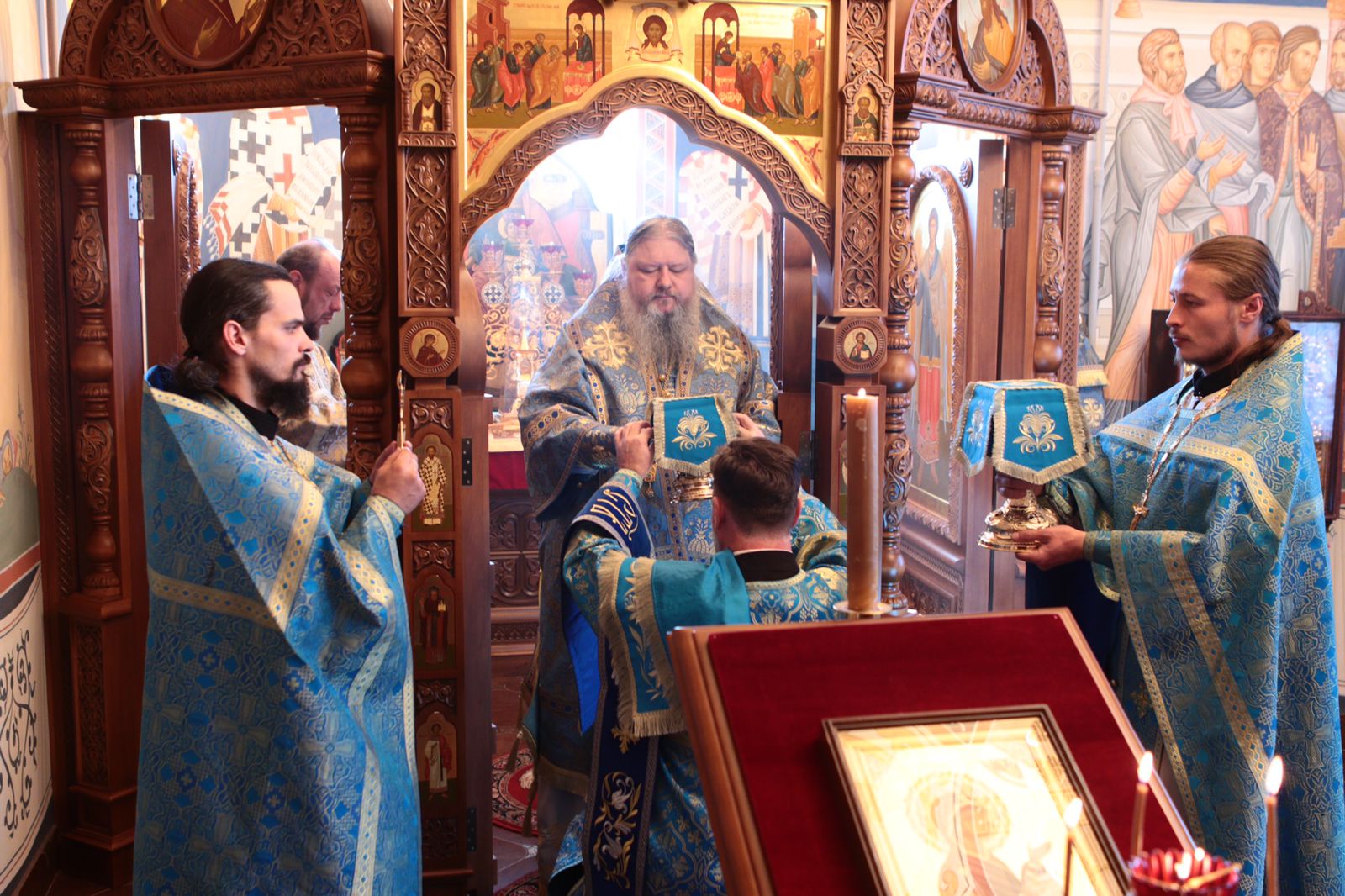 Владыке сослужили священники Дионисий Клименко и Николай Герасимов, а также протодиакон Константин Захаров. Пел квартет архиерейского хора.