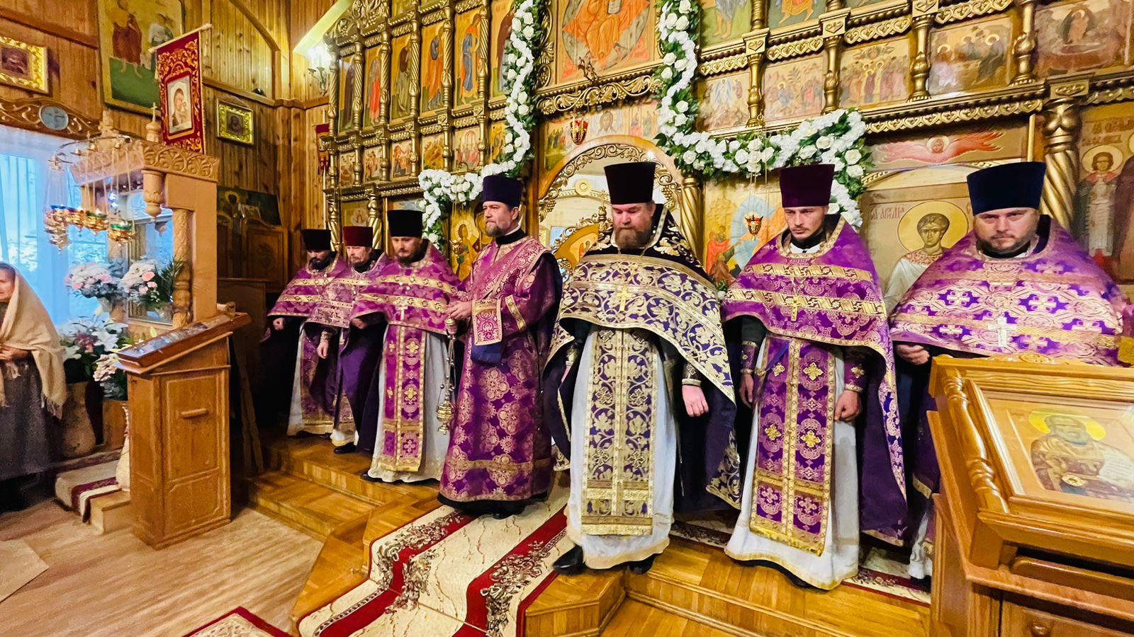Архипастырю сослужили настоятель храма секретарь епархиального управления протоиерей Валерий Суворов, архангельские и северодвинские клирики. Пел квинтет архиерейского хора.