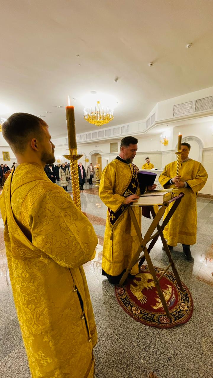 Архипастырю сослужили городские клирики, песнопения исполнило трио певчих архиерейского хора.