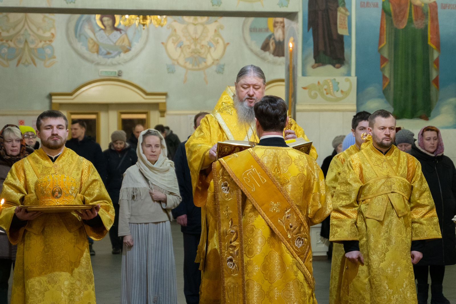 Митрополит Архангельский и Холмогорский Корнилий 12 февраля совершил вечерню с акафистом святителям Василию Великому, Григорию Богослову и Иоанну Златоустому в Ильинском соборе Архангельска.
