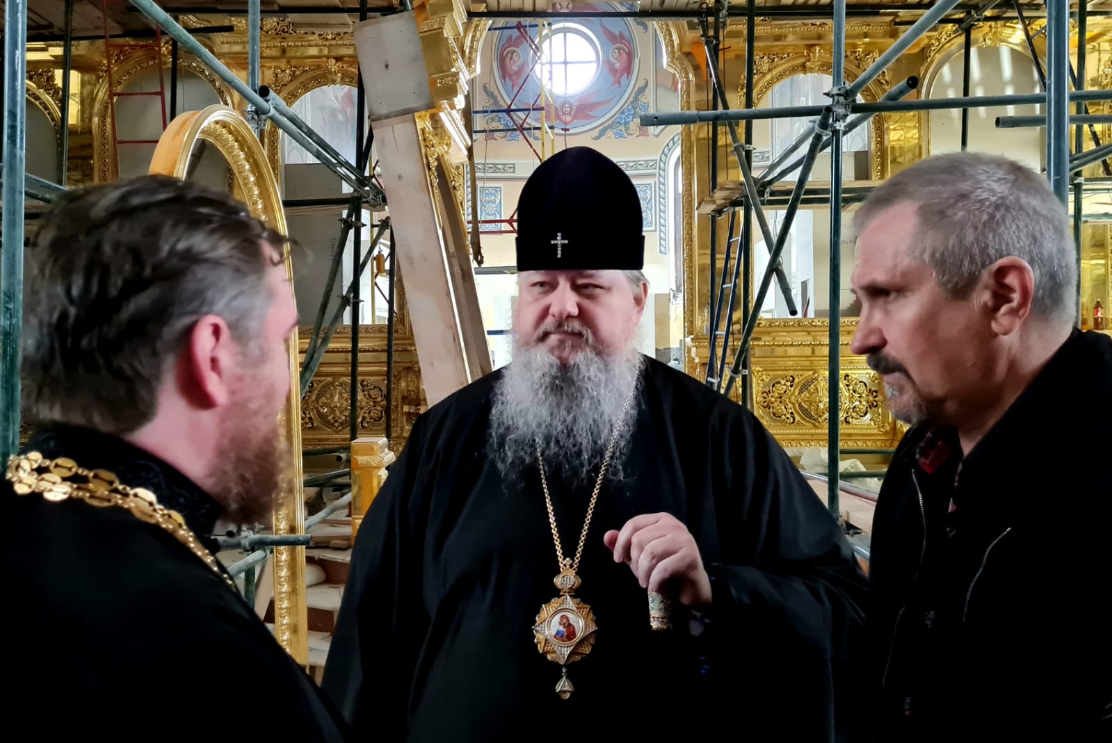 Дмитрий Яскорский доложил о том, как продвигаются работы в главном приделе соборного храма. Специалисты динамично монтируют пятиярусный иконостас, завершена укладка каменного пола, продолжается отделка карнизов балконов. Бригада художников в соответствии с ранее намеченным планом продолжает роспись стен. Поставщики и подрядчики работают в оперативном режиме, доставляя в храм ранее заказанные элементы убранства.