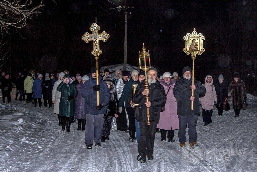 После этого состоялся крестный ход к месту крещенской купели. В этом году, как и прежде, иордань снова оборудована на реке Большая Коряжемка. Чин Великого освещения купели совершил старший священник Коряжемского храма отец Алексей. Он также поздравил всех верующих с праздником и окропил их освященной водой.