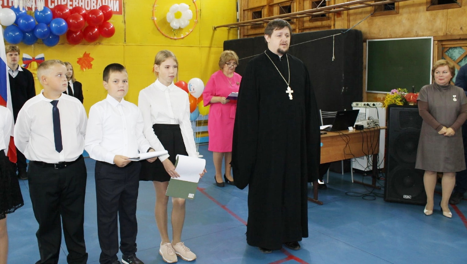 «После линейки батюшку пригласили в третий и четвертый классы для духовно-просветительской беседы», — сообщается на странице поселкового храма в соцсети.