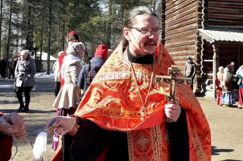Священник Владимир Логинов совершил пасхальный молебен в музее «Малые Корелы»