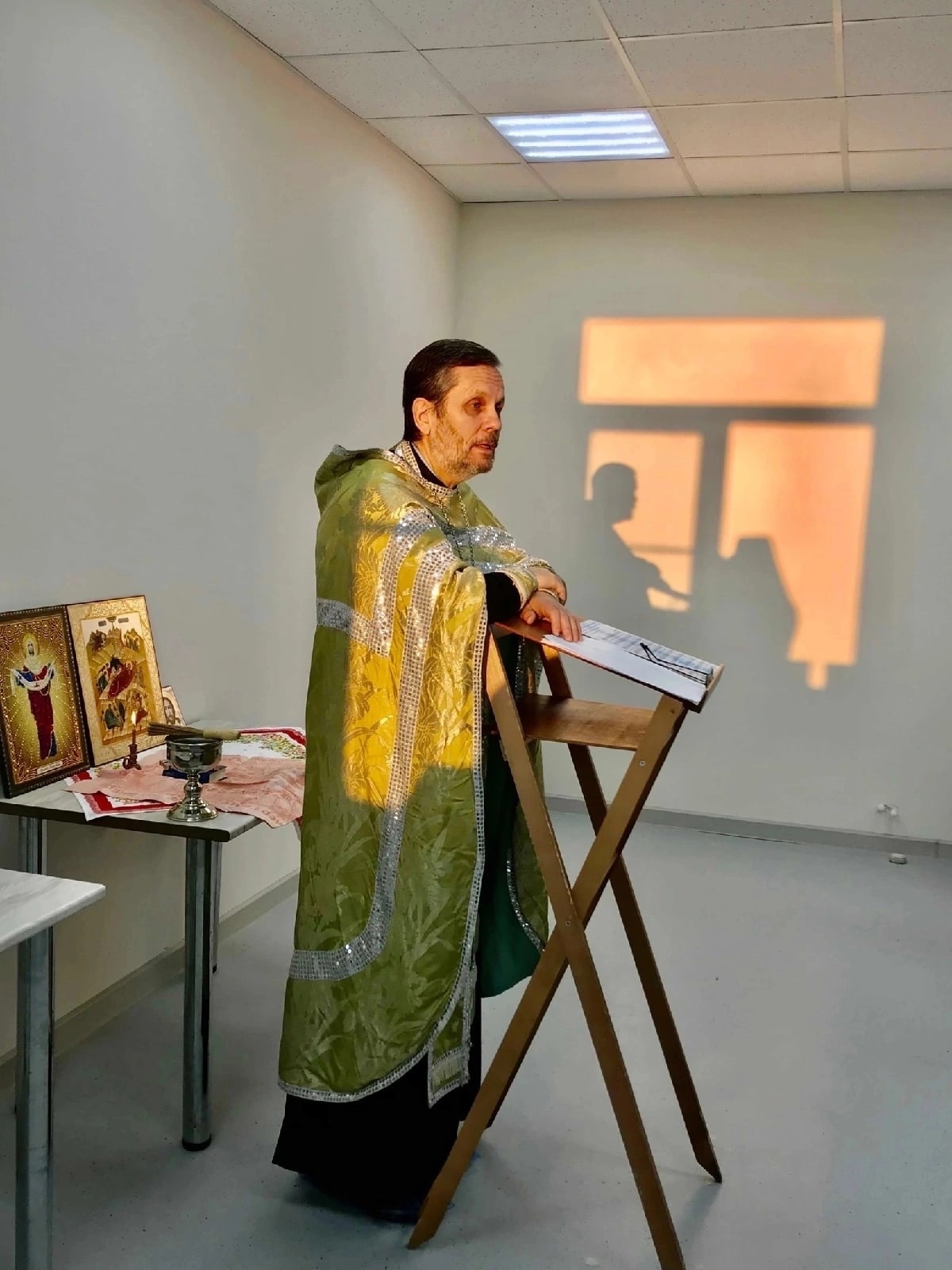 Отец Владимир поздравил подопечных пансионата с праздником, рассказал его историю, а также вручил пациентам небольшие подарки от прихожан Покровского храма.