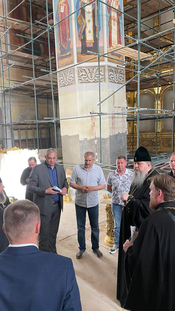 Во встрече принял участие главный архитектор собора Дмитрий Яскорский, секретарь епархиального управления протоиерей Валерий Суворов и другие представители духовенства, а также сотрудники подрядных организаций.