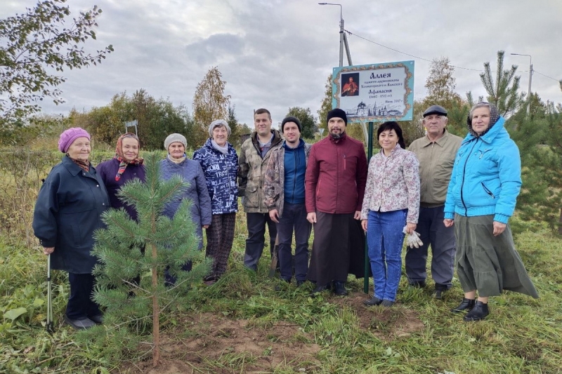 В день памяти архиепископа Холмогорского и Важского Афанасия (Любимова) в Холмогорах высадили хвойное дерево. Таким образом районная администрация продолжает благоустраивать аллею в честь первого северного архипастыря.