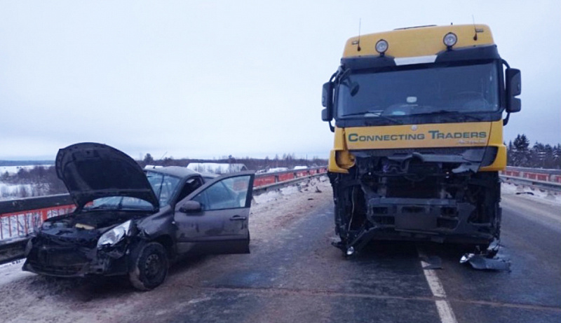 26 января во второй половине дня в экстренные службы поступило сообщение о дорожной аварии с участием легкового автомобиля и грузовика на 975-м километре федеральной трассы М8 «Холмогоры».