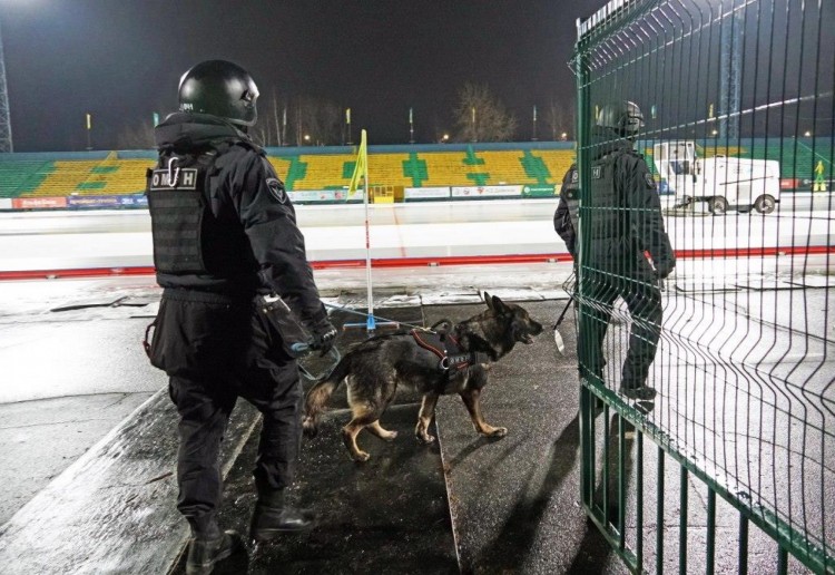 Перед началом домашней игры взрывотехник ОМОН Росгвардии совместно со специалистом-кинологом со служебной собакой обследовали трибуны стадиона и прилегающую к нему территорию на предмет выявления подозрительных предметов. Это важный шаг для обеспечения безопасности зрителей и игроков во время спортивных мероприятий.