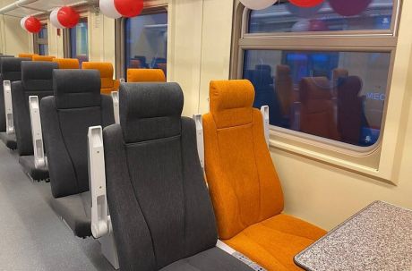 Комфортные теплые вагоны оборудованы кондиционерами, системой видеотрансляции, полками для перевозки багажа, предусмотрены розетки и USB-разъемы для подключения и зарядки гаджетов, в салоне установлены мягкие кресла с откидной спинкой и столики. Для слабовидящих пассажиров на все памятки нанесен шрифт Брайля.