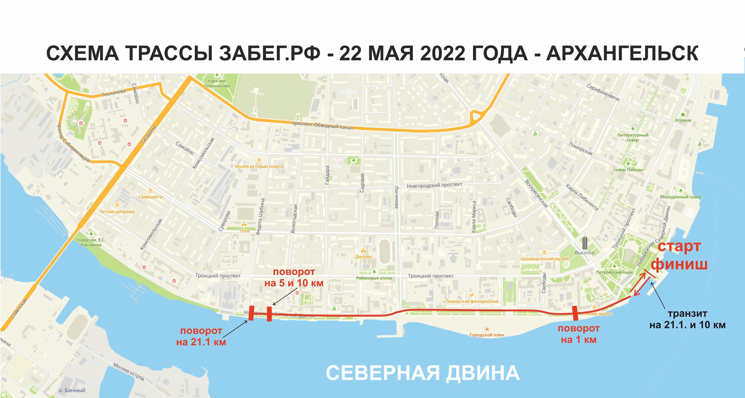 В воскресенье, 22 мая, стартует VI всероссийский полумарафон «ЗаБег». Первый старт состоится в 9 утра на территории Красной пристани набережной Северной Двины. Маршрут пройдёт по набережной Северной Двины от Красной пристани до улицы Гагарина по четырём дистанциям: 1, 5, 10 или 21 километр. Регистрация доступна на сайте .