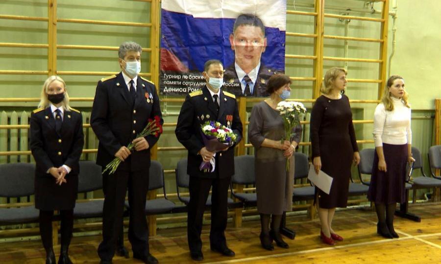 День памяти Дениса Романова в 95-й школе начался в спортзале. Маме героя вручили цветы и торжественно подняли флаг России. После стартовал баскетбольный турнир памяти погибшего земляка.