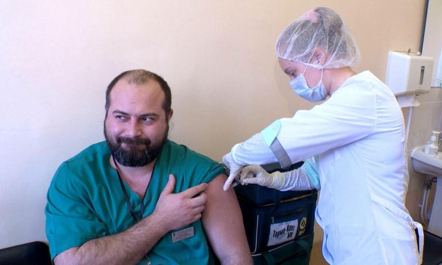 Сделал прививку и министр здравоохранения региона. Предварительно прошел осмотр. Перед вакцинацией необходимо измерить давление, прослушать легкие, осмотреть состояние слизистых. Если есть признаки инфекции, с прививкой придется повременить. А если самочувствие в норме – можно вакцинироваться.