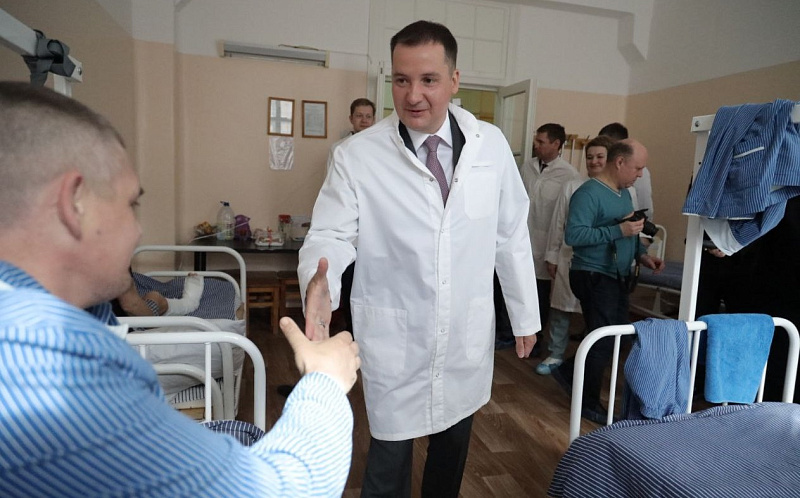 Александр Цыбульский навестил раненых участников СВО в военно-морском клиническом госпитале Северодвинска
