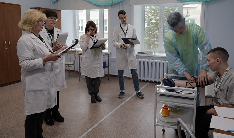 На базе учреждения конкурсанты соревнуются в компетенции «Лечебная деятельность».