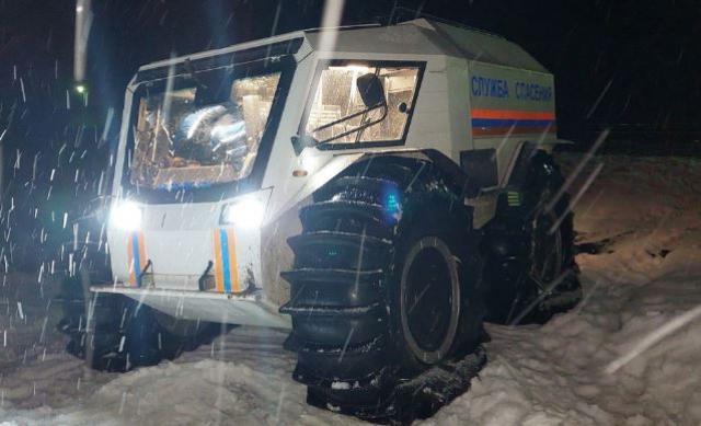 Спасатели службы спасения им. И.А. Поливаного совместно с работниками скорой медицинской помощи на снегоболотоходе «ШЕРП Макс» добрались до станции.