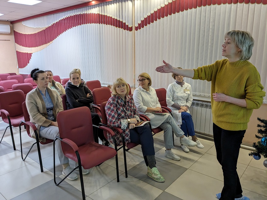 На семинаре сотрудникам офтальмологической больницы рассказали не только как правильно общаться и избегать спорных ситуаций, но и провели практическое занятие, где разобрали наиболее часто возникающие конфликты.