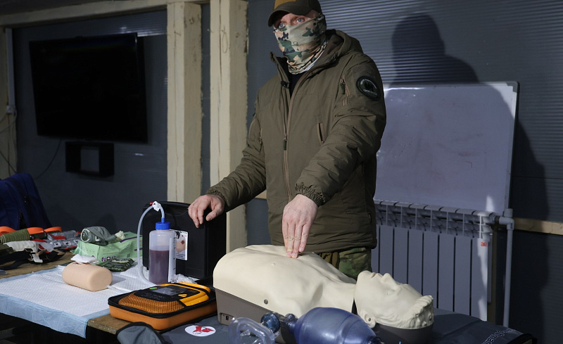 Медик-фронтовик обучает добровольцев основам оказания первой помощи на поле боя