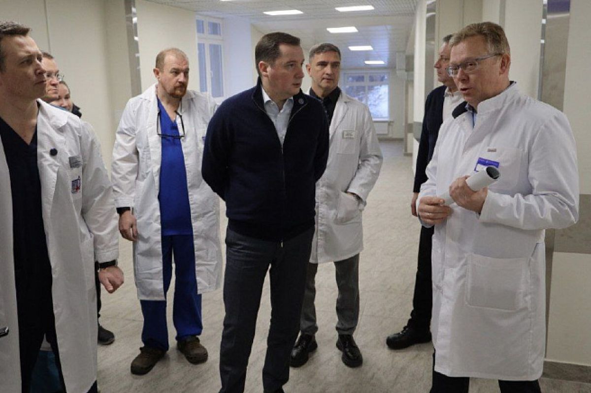 Глава Поморья посетил отделение анестезиологии-реанимации и интенсивной терапии (ОАРИТ) и созданный в больнице урологический центр.