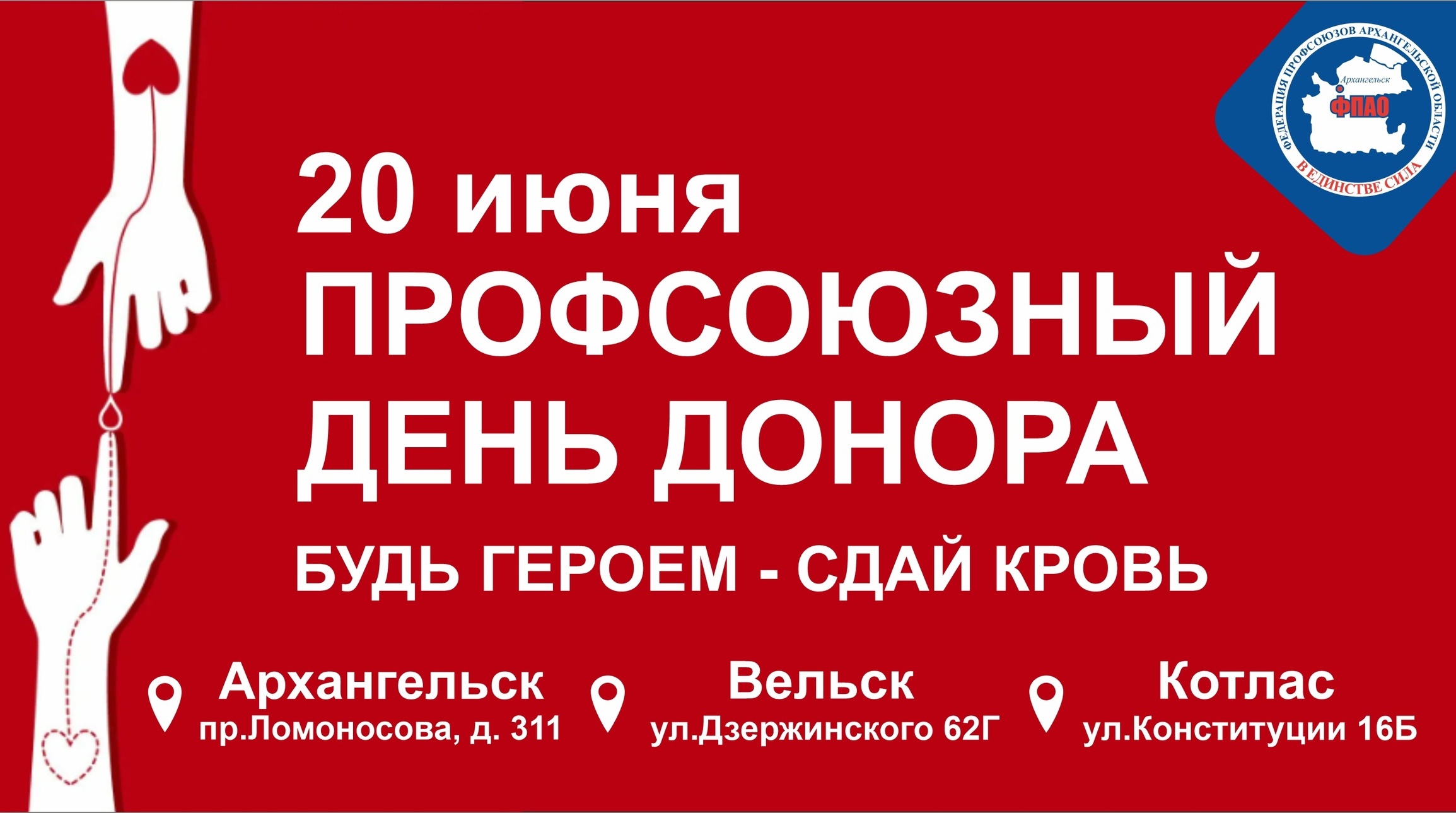 День профсоюзного донора в Архангельской области пройдет 20 июня.