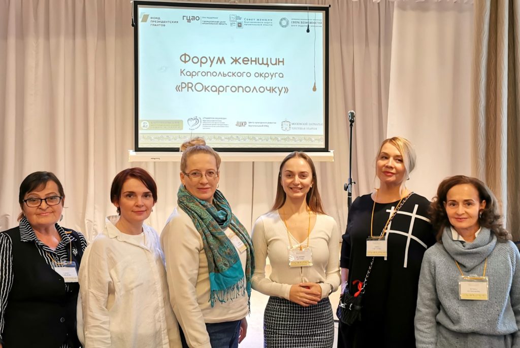 20-21 октября прошёл форум женщин Каргопольского округа Архангельской области «PROкаргополочку». В работе форума по приглашению председателя совета женщин Каргопольского округа Светланы Горшковой приняла участие специалист нашего центра Елена Гафарова.