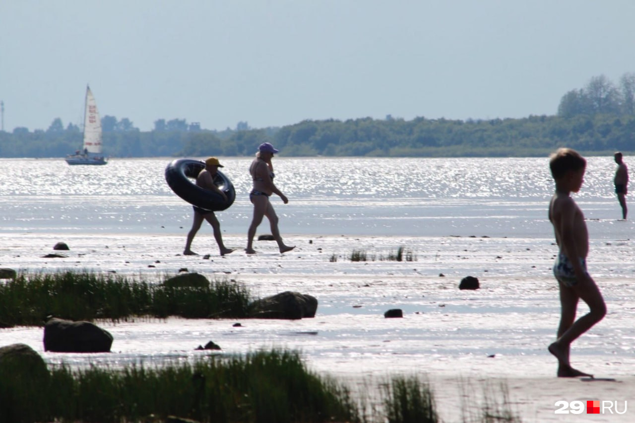 Некоторые жители Архангельска берут с собой на пляж надувные круги, хотя в воду заходить запрещено