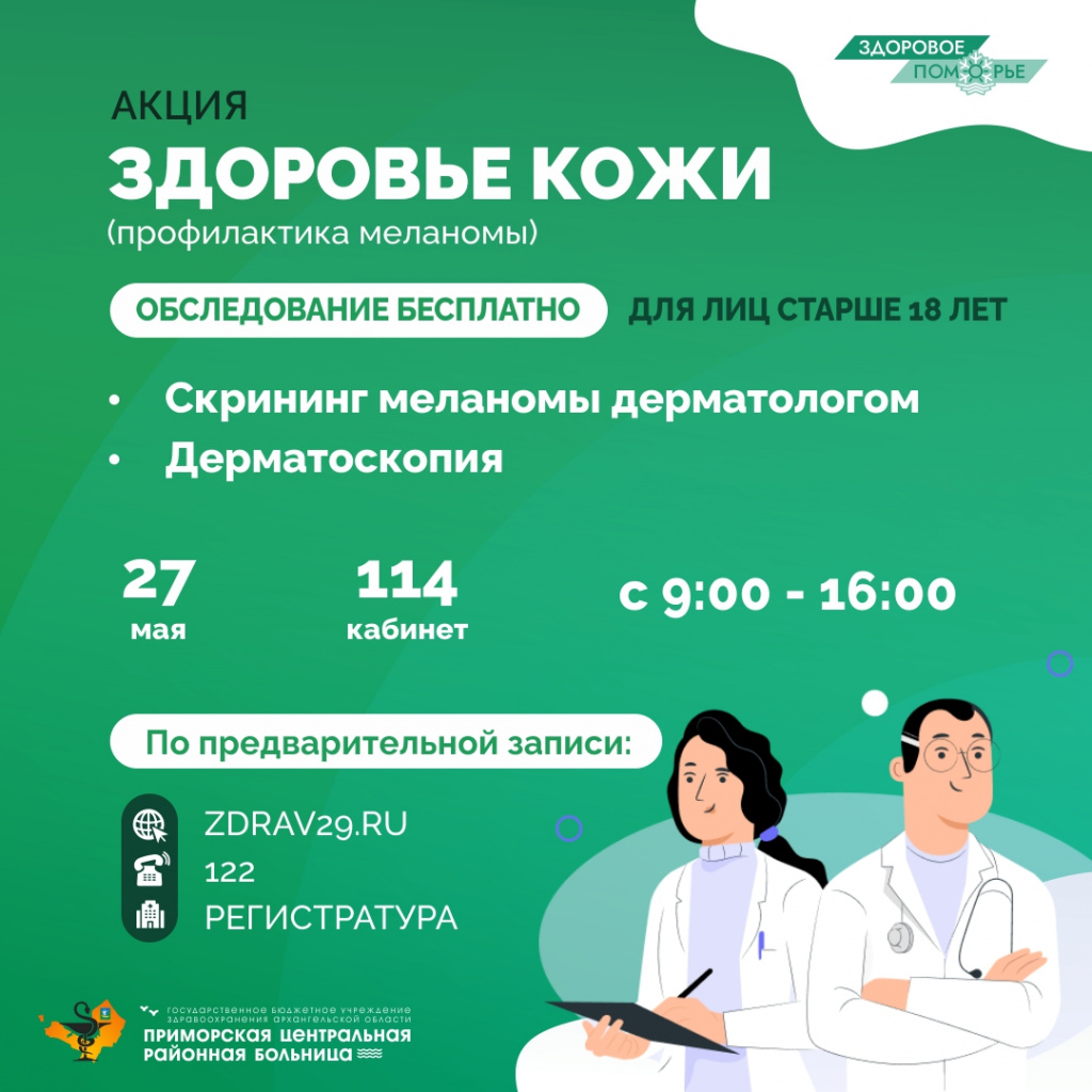 27 мая жители Приморского района смогут получить консультацию врача–дерматолога, а также пройти дерматоскопию.