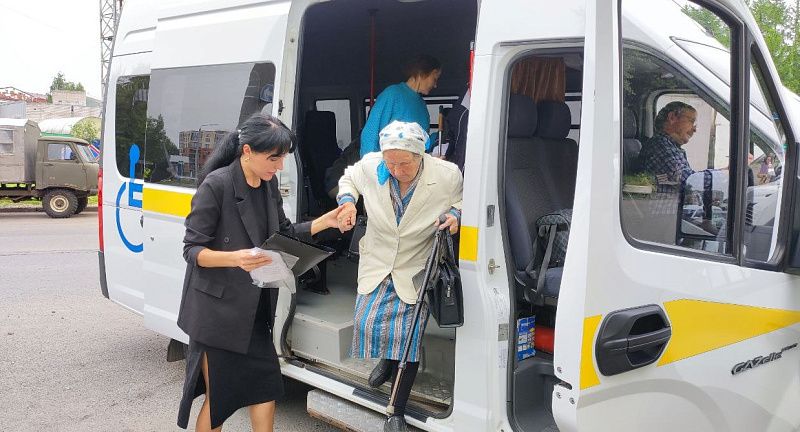 Спецтранспорт комплексного центра социального обслуживания забирает пожилых людей прямо у подъезда и отвозит в медицинскую организацию, где соцработник также сопровождает пожилых людей, помогая найти нужный кабинет, сориентироваться в очереди.